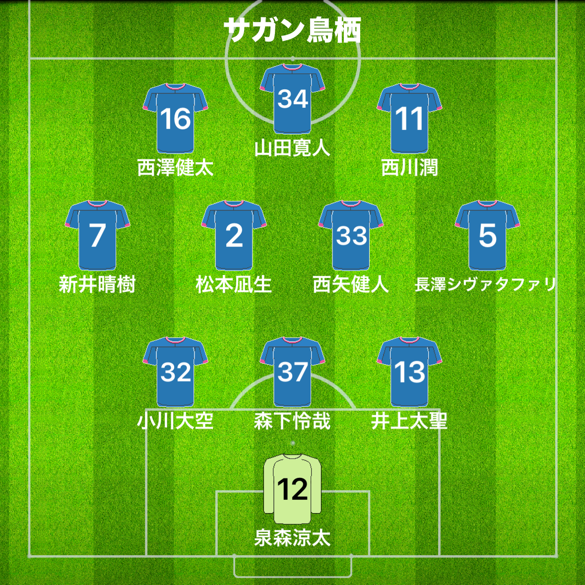 ◆今節の鳥栖のメンバー